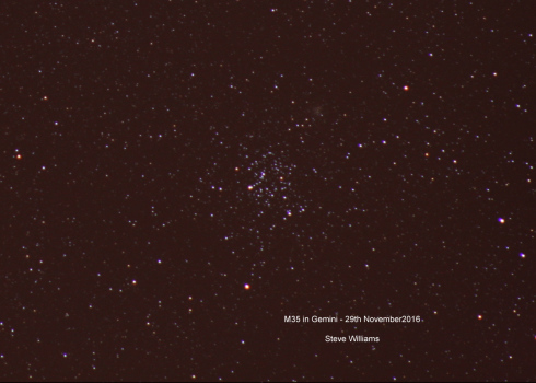 M35 - an open star cluster in Gemini. Imaged on 29th November 2016