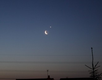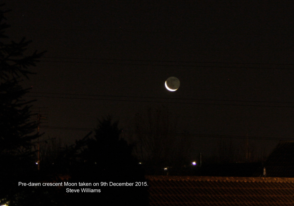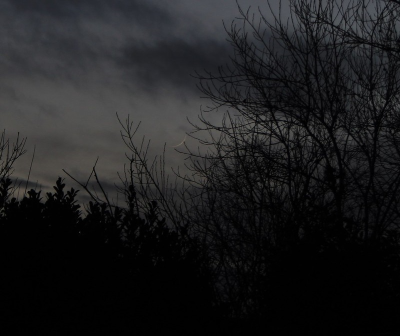 A young crescent Moon taken on 2nd January 2014 at 4.30pm. Venus should have been visible nearby as well however was unfortunately obscured by the cloud.