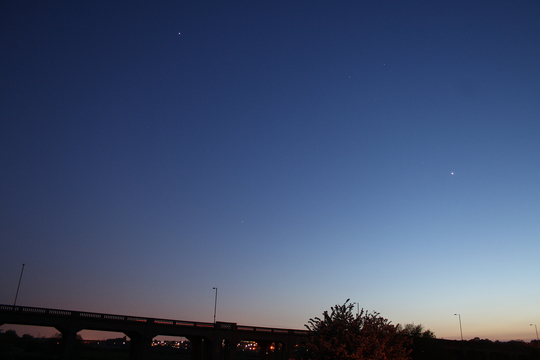 Venus and Jupiter taken above the A6 Irthlingborough bridge on 13th May 2015