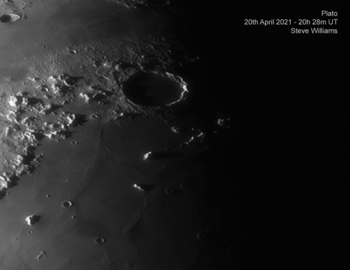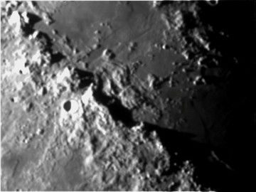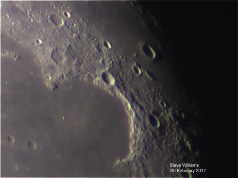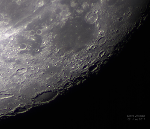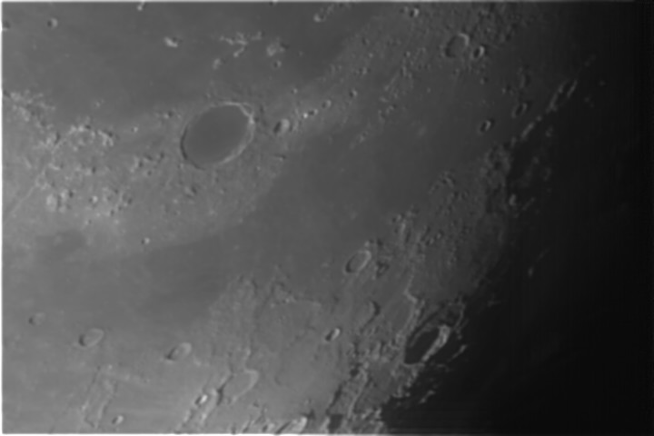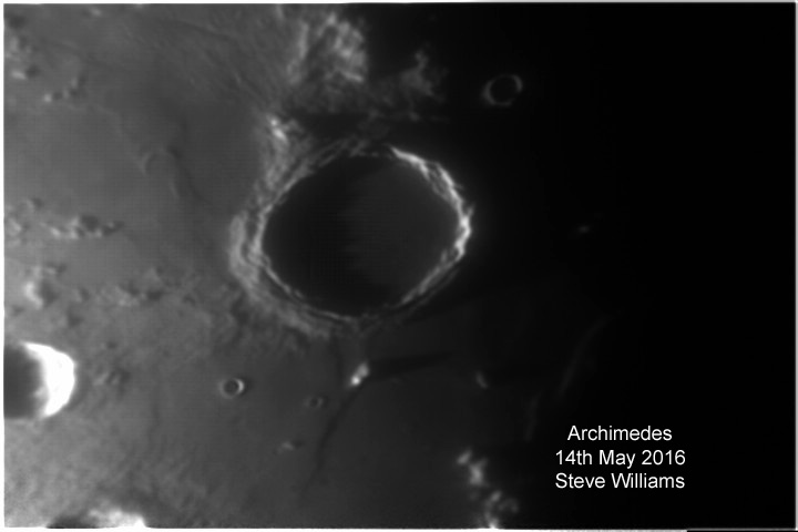 Archimedes as imaged on 14th May 2016 through the 6" Refractor using a Celestron Mono Burst camera. Archimedes is a 50 mile diameter crater.