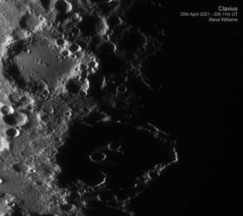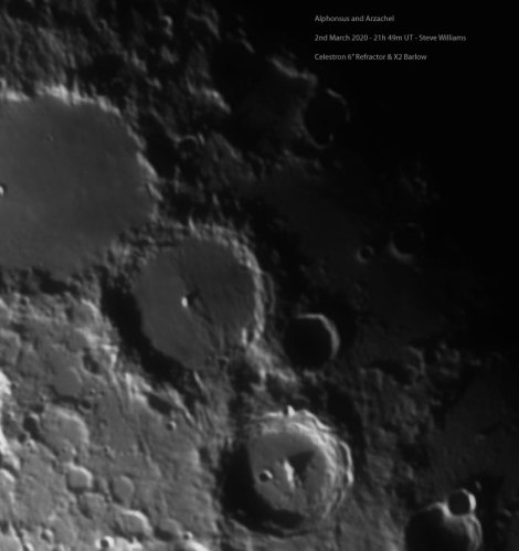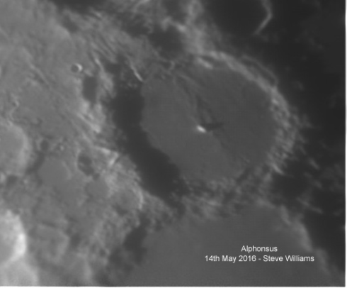 Alphonsus as imaged on 14th May 2016 through the 6" Refractor using a Celestron Mono Burst camara. Alphonsus is a 71 mile diameter crater.