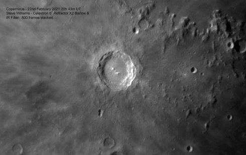 Copernicus imaged on 20th December 2015 through the 6" Refractor. 3,000 images stacked and processed in Registax6.