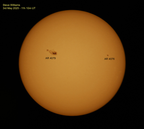 The Sun As Imaged Through A 'White Light' Filter On 3rd May 2025. Sunspot AR 4079 is the largest so far for 2025!