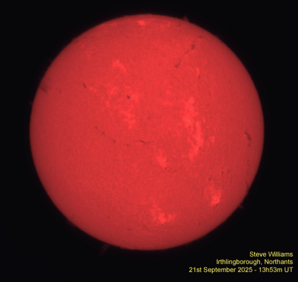 A Hydrogen Alpha view of the Sun taken on 21st September 2025 using an Acuter 40 Phoenix Solar Scope. Montage of two images.